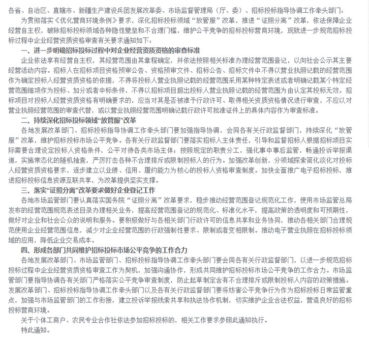 上面是從營(yíng)業(yè)執(zhí)照的層面來(lái)講述招投標(biāo)的,在第5條要點(diǎn)中,還明確了:嚴(yán)厲打擊各種不合理排斥或限制投標(biāo)人的行為...